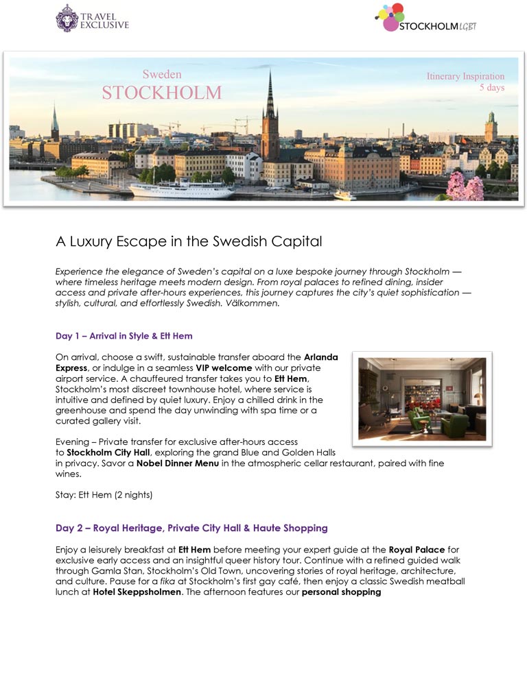 If you are a member of the travel trade – a tour operator, travel agent or meetings booker who is interested in LGBTQ travel to Stockholm – your first point of contact is Christina Guggenberger at christina@stockholmlgbt.com